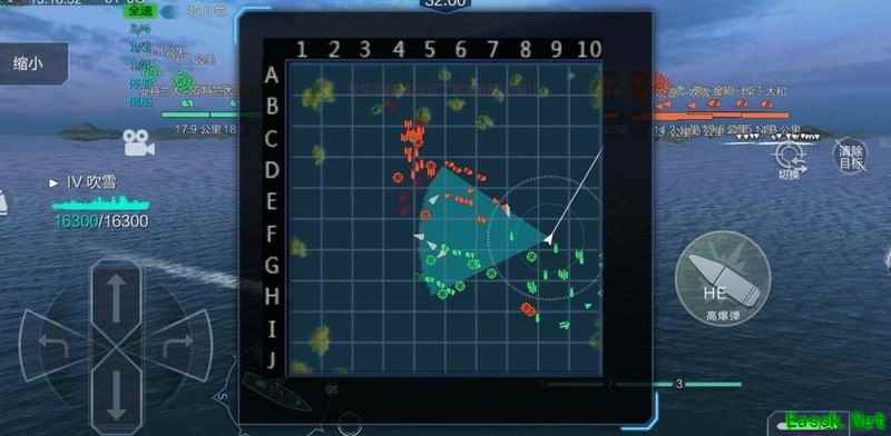 绿圈代表舰船当前的水面隐蔽范围,有关隐蔽与点亮机制的详细说明将另发专题讲解。