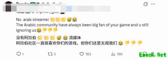 地区代表性问题同样引发不满。有玩家直接指责游戏行业忽视阿拉伯和法国创作者,吐槽名单中仍无阿拉伯和法国创作者身影,质问前职业选手、深受玩家喜爱的Poko为何未被邀请,认为全球性活动的组织者应具备全球视野。还有创作者Lex直接发文“我为啥没在名单上”,道出了部分未入选创作者的困惑。
