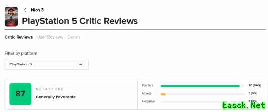 今日,《仁王3》媒体评分解禁,截至发稿前,游戏在M站PS5版均分87分,共34家媒体给出评分,好评32家,中评2家,暂无差评。PC版88分,共8家媒体给出好评。