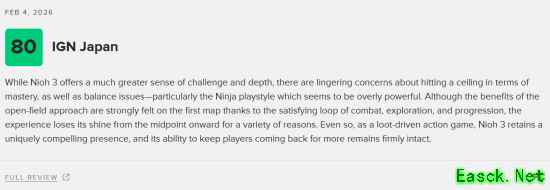 对于系列老玩家而言,这是一次凯旋般的进化;对新玩家来说,这虽然远非轻松,却也是一个绝佳的入门契机。《仁王3》要求玩家保持谨慎、做好规划并充满耐心——而作为回报,它将带来一场残酷却引人入胜的冒险,赋予玩家巨大的满足感。