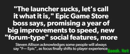 他表示,Epic在去年已经推出了不少改进内容,今年将继续解决一些大问题。他在采访中直言:“目前启动器太垃圾了,简单来说就是非常慢。”