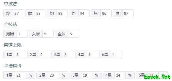 如果以上限制无法满足需求,请自行使用计算器调整菜谱与厨师,我的个人偏好不必成为你的限制。