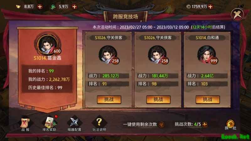 以上便是跨服竞技场的玩法攻略,祝各位大侠都能跻身排行榜前列。