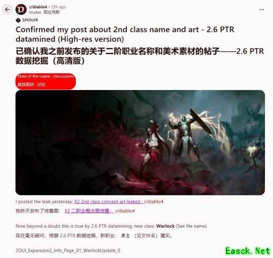 根据《暗黑破坏神4》2.6版本公共测试服(PTR)最新的数据挖掘信息,被暴雪列为高度机密的第二个新职业的身份疑似揭晓。挖掘出的游戏文件明确指向一个名为“Warlock”(暂译:术士)的职业,为近期社区热议的传闻提供了关键证据。