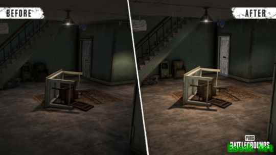 本次更新中,艾伦格地图回归到了玩家熟悉的经典面貌,赛季限定内容“艾伦格:零度计划”的相关道具与功能被移除。同时密室中可获得的道具也出现了变化,玩家可在密室中获得多合一维修套件、紧急掩体信号弹和电波干扰背包等道具。地图新增可破坏气罐,轰炸区与渡轮也再次登场。此外,本次更新还对整体建筑的室内照明进行了优化。