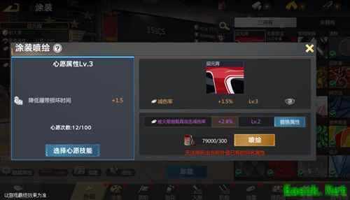 为了降低涂装喷绘属性获取难度,本次更新中,涂装喷绘新增“祈愿”功能,玩家在进行喷绘时,可对心仪的属性进行祈愿,喷绘累计到一定次数后,即可获得祈愿的属性。