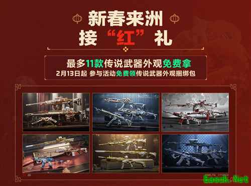 新春来洲接“红”礼!2月13日起,参与活动可领8款传说武器外观,2月16日起,参与活动可额外领取3款传说武器外观,最多可拿11款传说武器外观!