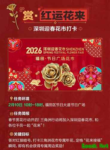 新春花市,红运花来。2月10日10:00-18:00,深圳迎春花市赏花行动开启,打卡三角洲花市专属年花,答对红狼暗号,定格“花来接福”瞬间,即有机会领取游戏专属周边奖励。
