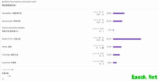 在这次关于 “哪些卡普空系列最需要回归” 的投票中,《龙战士》以最高的支持率成为最被期待回归的系列;其次是《恶魔战士》和《私立正义学园》,也获得了较多支持;《出击飞龙》《快打旋风》《异域龙潮》的支持率依次降低;《星际格斗》的支持率在所有选项中最低。