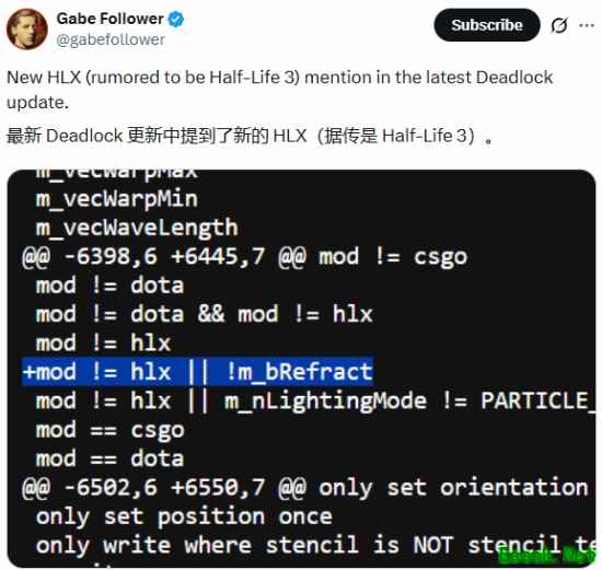 盖布·福勒沃回复称:“此事无特别,但能证明 HLX 未在Valve冬歇期取消,仍在推进。”