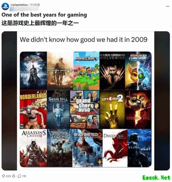 近日,有Reddit用户发帖表示,玩家们时常忽略了2009年是电子游戏历史上最辉煌的一年,引发了玩家们的讨论。