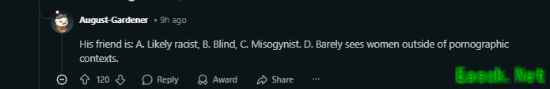 也有人更直白地评论称:“我觉得你朋友要么带点种族偏见,要么就是根本对女性不感兴趣。”