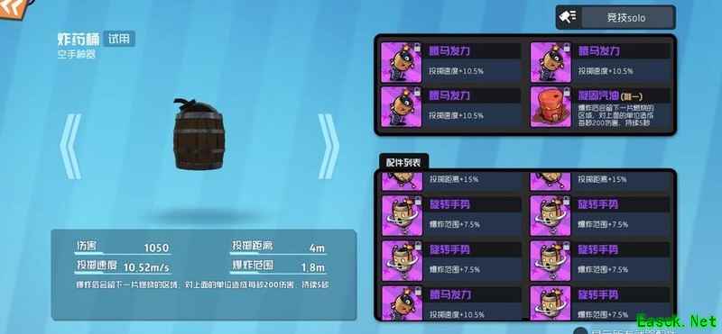 炸药桶可选四速或三速配汽油,根据手速选择,汽油虽影响移速但能蹭血控图,伤害更高,适合主动压制。