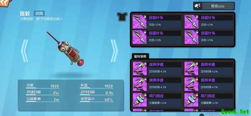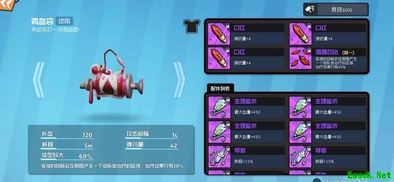 针筒选择四攻击最为稳妥,收益最高。对于操作不够熟练的玩家,建议直接搭配四攻击,简单实用。虽然单排缺乏治疗支持,但抱人撞墙时的一针伤害依然可观。