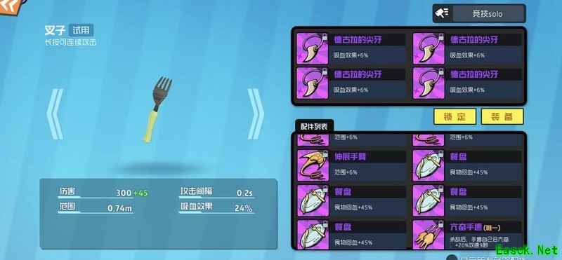 叉子不仅能丢人蹭血,四獠牙可回血,路人局建议带四餐盘,效果更佳。