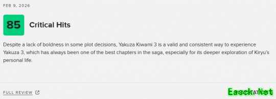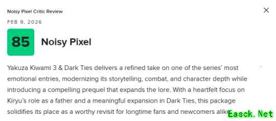 《如龙极3/如龙3外传 Dark Ties》将于2月6日正式发售。近日,本作的媒体评分也已解禁。截至目前,《如龙极3/如龙3外传 Dark Ties》M站媒体均分为75分,共收录40家媒体。其中,IGN给出了7分的评价。