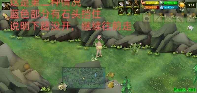 前行不远可见干草堆,查看小地图,会出现两种情形。
