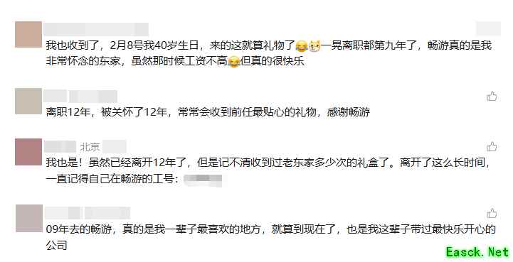 近日,一位IP地址显示来自北京的网友发文称,他因家庭变故已从搜狐畅游离职十年,却还在近日收到老东家寄来的新年礼物。这份跨越时光的关怀让他感慨万千,也让今年的礼物显得格外珍贵。