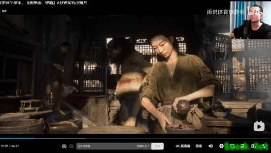 没过多久,B站百大、知名篮球解说博主@雨说体育徐静雨发布了视频,“逐帧”分析了贺岁短片——一个游戏科学logo就能分析1分钟,太能唠了。