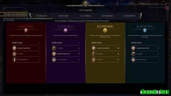 「时间的考验」还将对胜利条件进行大幅改动。我们彻底重构了胜利达成方式,新设计让胜利目标从游戏初期就清晰呈现,玩家需要在军事、经济、文化、科技四大维度中建立绝对优势。从古典时代开始,玩家就能为任意胜利目标积累进度,若发展足够领先,最早在探索时代即可赢得游戏。