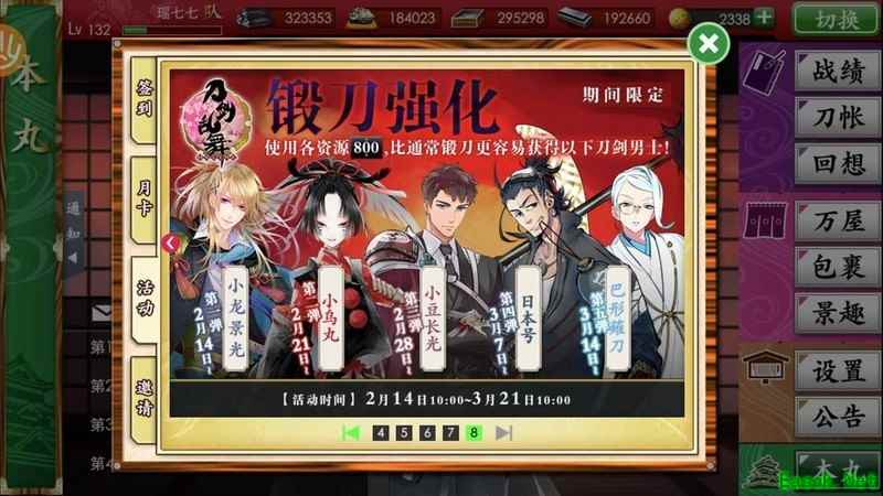 刀男是舰娘collection的性别反转版本,游戏设计清新,无过度氪金元素,运营坚持初心。秉持用爱发电,可捞可锻的理念,在如今充斥内购的网游中显得尤为独特和难得。
