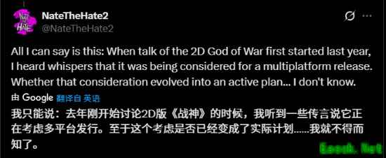 在社交平台上回应网友提问时,爆料人Nate the Hate(曾准确提前透露任天堂Switch 2公布日期,拥有不错的爆料记录)提到了一些关于这款《战神》衍生作的情况。