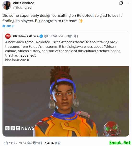没过多久,国外玩家扒出,曾就职于臭名昭著的Sweet Baby Inc.的Chris Kindred曾为《Relooted》提供了一些“早期设计咨询”。