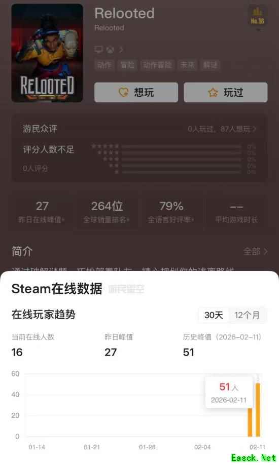 然而该作上市即扑街,Steam最高在线玩家数仅仅只有可怜的57人。