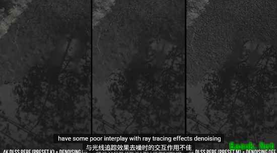 至于开启游戏内置降噪器后画质变差的原因,技术专家与第三方开发者沟通后发现,DLSS4.5的M预设和L预设,与DLSS对低分辨率图像进行上采样之前的光线追踪效果降噪处理,存在不良的相互作用。