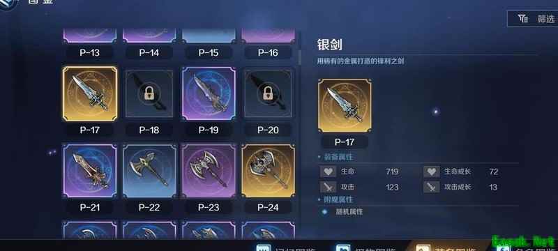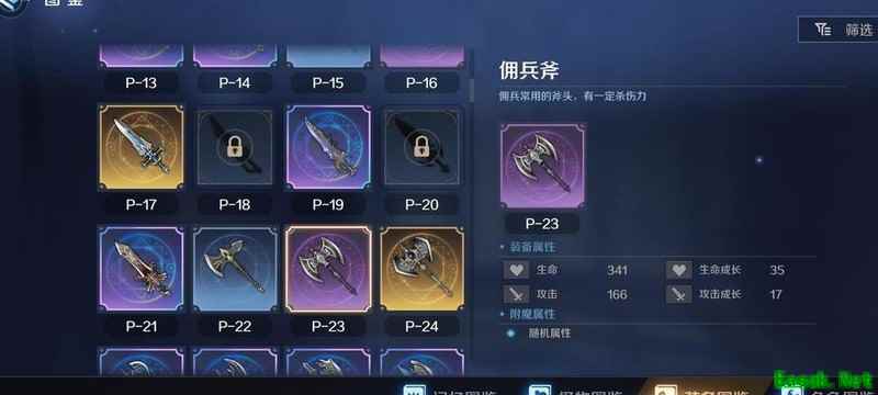 观察两种武器的攻击力,紫色斧头强于金色剑。同职业有两种装备倾向:刺杀系弓箭胜于匕首,破坏系斧头优于剑。但需注意,金色装备的基础生命值高于紫色。因此选择时应结合武器类型与生命属性综合考量,权衡输出与生存能力。