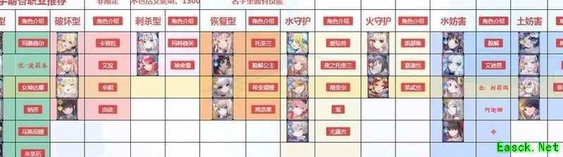 前期至中期各职业角色推荐,仅限常驻非氪金及非限定角色,不含爱妮萌。
