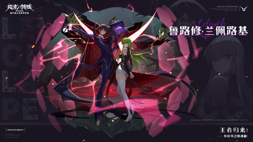 在即将与指挥官们见面的《终末阵线》X《Code Geass 叛逆的鲁路修》联动版本中,鲁路修、C.C.、朱雀、卡莲……一众伴随我们从儿时成长至今的动漫人气主人公们,将陪伴终末指挥官们一起在终末世界展开精彩刺激的机甲弹幕之旅,尽享“1+1>2”的游戏乐趣!