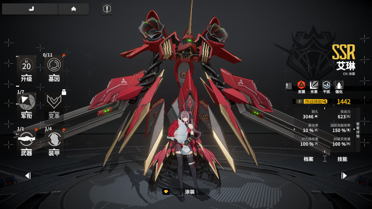 “命运的红线已经把我和您牢牢绑在一起了呢,被一圈圈缠绕着。”西西尼亚的帝国守备官艾琳,手捧一束鲜红蔷薇,向指挥官大胆示爱,希望她的热情能够温暖到你。艾琳的机甲“桀派”属于高速型专用装甲,机身展开的样子也像一朵绽放的蔷薇花,明艳绚烂。
