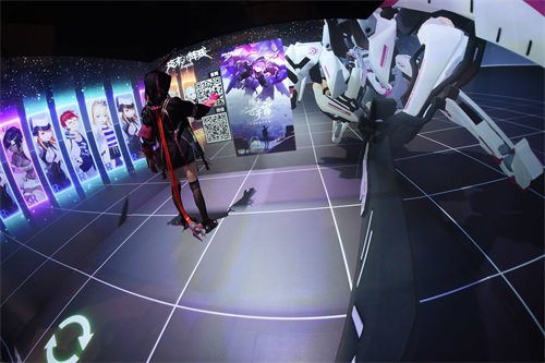 《终末阵线:伊诺贝塔》在游戏中创造了一个极具梦幻科技感的伊欧斯世界,令指挥官们心生向往。于是终末团队为展现现代科技的强大魅力,在现实中为大家带来MR(裸眼混合现实)主题馆,采用独特技术,以物理空间墙地为成像载体,指挥官们无需穿戴任何设备,即可一睹虚拟与现实交织的世界,触及更加真实的终末世界!