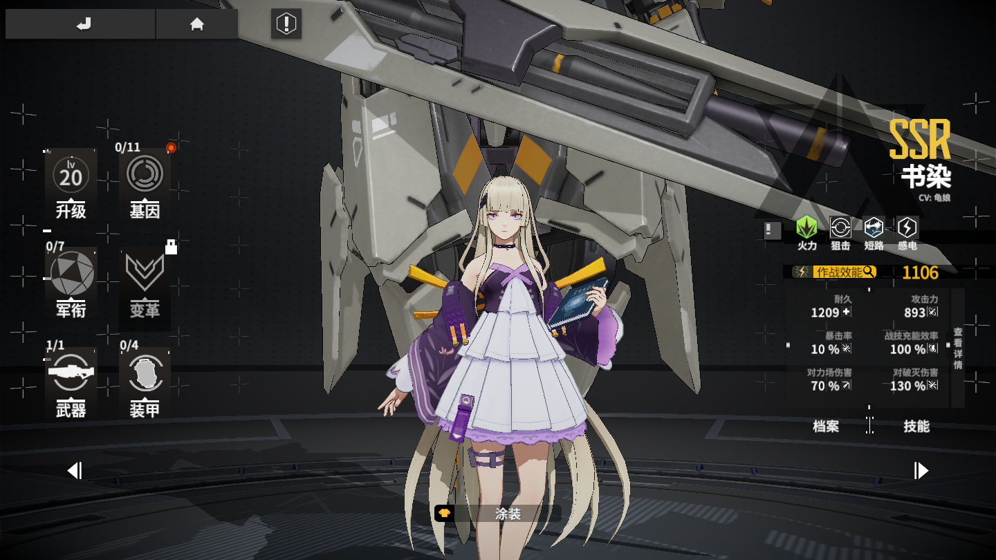 推荐有条件的指挥官将书染军衔等级解锁至4级,将大幅提升最终伤害,能力有限的指挥官也建议至少解锁军衔等级1级,普攻命中感电状态下的敌人将有概率为「战术跃迁」充能1次。