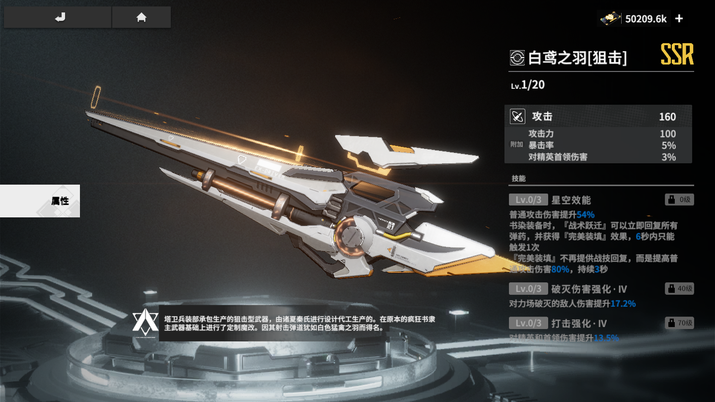 书染配有专属武器「白鸢之羽」,装备时,「战术跃迁」可立即回复所有弹药,并获得完美装填效果,提高普攻伤害。「白鸢之羽」70级后可解锁对精英怪和BOSS伤害提升,是非常适合火力骑士的武器。武器下位替代可选择「响尾蛇」,概率提高普攻攻击力,适合书染这类较为依赖普攻输出的骑士。