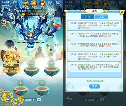 “冥龙降世”玩法作为《道友请留步》中最受玩家喜爱的玩法之一,在本次的版本更新中也有了新的突破,那就是究极BOSS紫冥龙皇来袭!最为史上最凶残的BOSS,唯有单场战斗可以直接秒杀100级冥龙或总战力达到50亿的玩家才能拥有挑战资格!当然,更高的挑战资格自然意味着更丰厚的奖励,每40秒即可获得800元宝,一夜暴富从此不再是梦!
