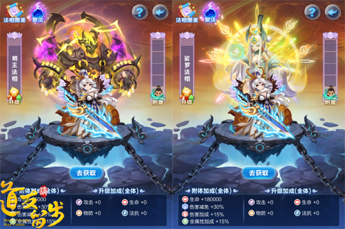 《道友请留步》中,法相系统在游戏的中后期扮演着重要的角色。本次金色法相的全面更新,将为玩家带来颜值和战力双重爆表的体验。全新的娑罗法相和明王法相将拥有更加强力的属性加成和华丽形象。金色法相的专属图鉴还可以为玩家带来额外的属性加成。有颜有战力,才是我们追求的目标。