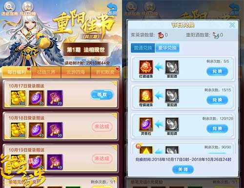 除了鲲宝的曝光之外,重阳节专属福利活动也将与10月17日至10月25日在《道友请留步》游戏内限时开启。本次重阳节活动的不仅为广大玩家准备了登录即可领取的丰厚大礼,还为玩家准备了三期主题活动,完成活动内的主题任务即可领取额外的稀有奖励!