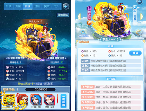 在解决阵容基础搭配之后,第二个需要考虑的问题则是“如何养成紫金神仙”?在过往的版本中,会出现由于高品质卡牌的养成成本太高,导致性价比降低的问题。但是,本次推出的紫金品质卡牌养成所需要的材料与之前的金卡、红卡基本一致。同时还新增了升星、凝魂两种养成体系。也就是说只需要和之前一样的成本就能够收获更强的战力,同时还能拥有更高的成长潜力,可以说是一举两得了!