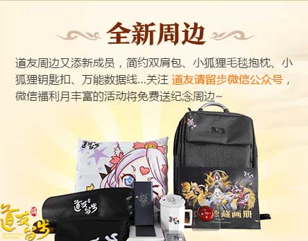 另外《道友请留步》周边又添新成员,简约双肩包、小狐狸毛毯抱枕、小狐狸钥匙扣、万能数据线……整整一个月给你全方位的宠爱。
