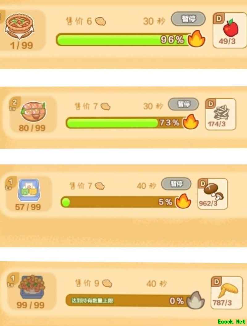 所有菜谱现已解锁,只要食材和小鱼干充足,可随意选择解锁任意菜品,每道菜最高可升至11级。