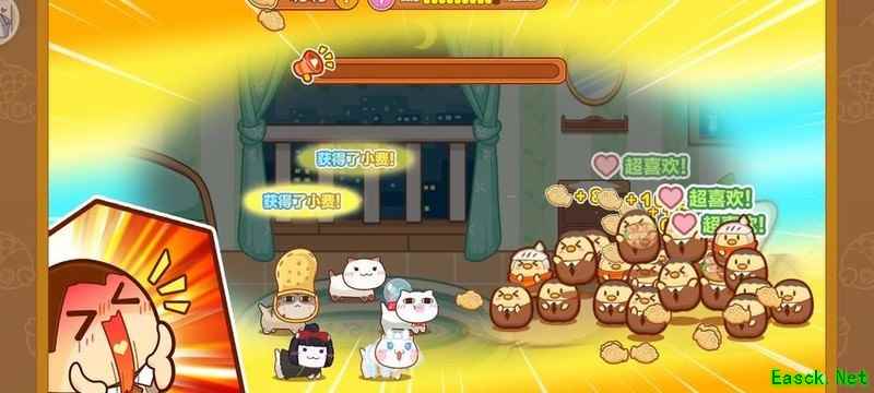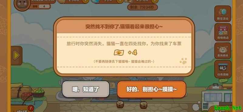剩余时间表示这只猫咪还能工作多久,体力则可用于点击某只猫,消耗一点体力来加速获取一个材料。
