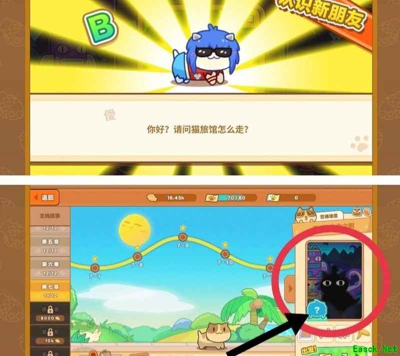 集齐线索需反复挑战指定关卡,当该关进度达到100%时,即可解锁猫咪并获得本章节的全部星星。
