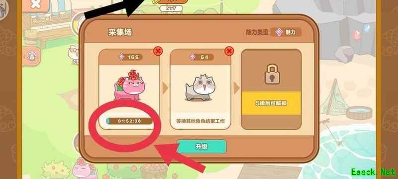 每只小猫在农场工作有时间限制,到期需更换;属性越高,采集效率越快。