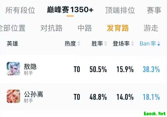 从营地ban率榜可以看出,射手的强度与其自保能力密切相关。这两位射手不仅机动性强,自保能力也十分突出,因此成为发育路玩家冲分的首选英雄。