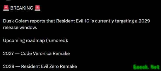 爆料人还梳理了未来几年《生化危机》系列的潜在发布节奏,疑似将保持“每年一部”的高频次:
