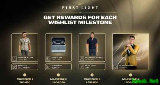 之前《007:初露锋芒》开启社区挑战活动,根据玩家愿望单加入量来解锁对应的奖励。近日官方宣布,本作愿望单添加量已破220万,远超他们预计的150万。最后一个神秘奖励为“金色礼服”,将自动添加到玩家的IOI账号,并在游戏上线时即可使用。