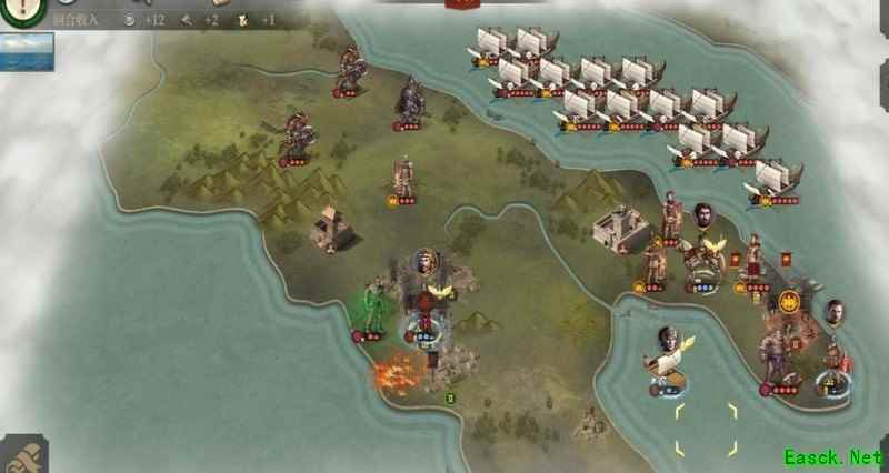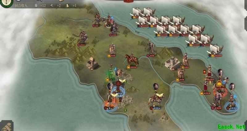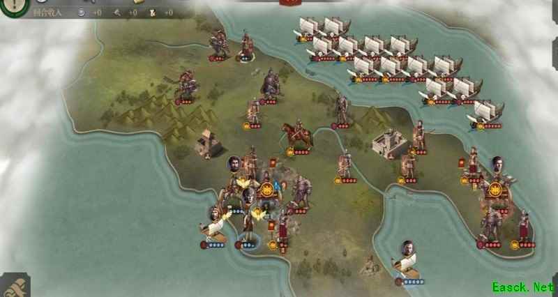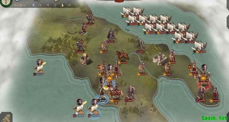 等独眼控制城市后,我们再将其击杀,这样占领时就不会刷新敌军。干掉独眼并夺取城市后,后续行动就容易多了。注意庞培的血量,情况不妙时及时下海躲避。我刚才没太留意,但懒得重来,就这么继续了。