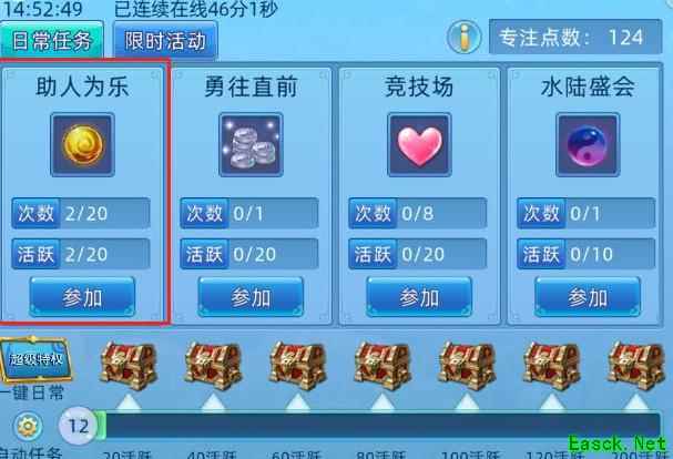 助人为乐即为修行,完成任务可获丰厚经验,等级达15级以上即可全天参与。